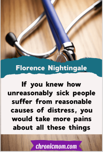 If you knew how unreasonably sick people suffer from reasonable causes of distress, you would take more pains about all these things- Florance Nightingale