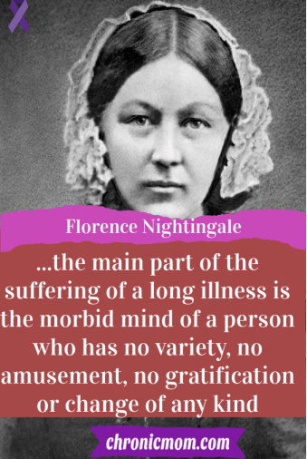 …the main part of the suffering of a long illness is the morbid mind of a person who has no variety, no amusement, no gratification or change of any kind.²